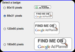 Never forget to display a Google Ad Planner Badge in your blog or website. Advertisers who click your badge will be brought directly to your Google Ad Planner site profile, where they'll find your traffic, demographics, and advertising information.- Claim your site. Then Sign in to Google Ad Planner , then Click the Publisher tab. Edit “site Information”. Scroll down to see Site Badge.